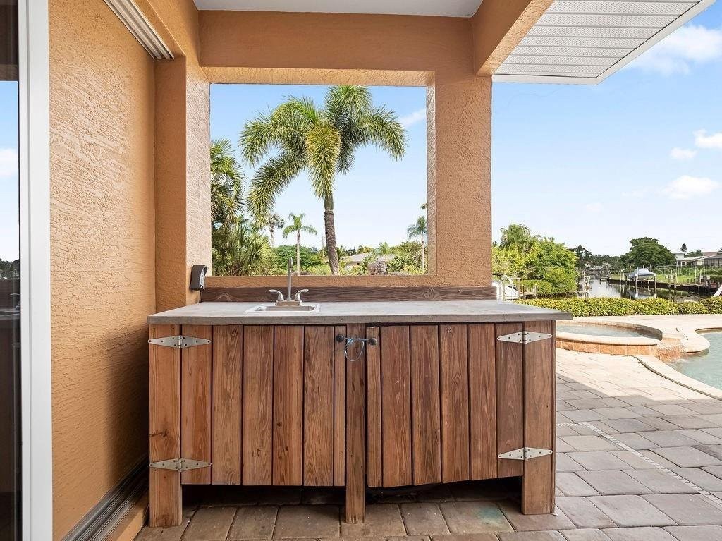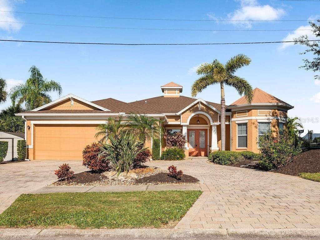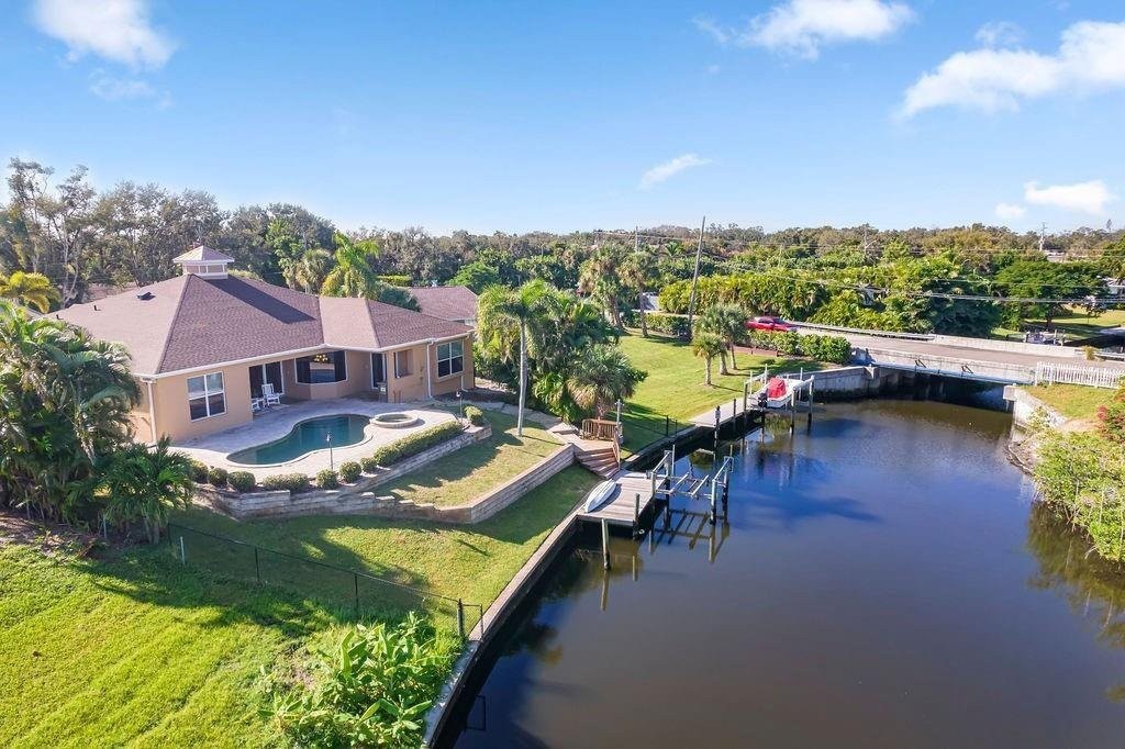 Welcome to your private oasis in vibrant South Sarasota—where luxury living meets laid-back, canal-front charm. Just minutes from Siesta Key and with no HOA, this 4-bedroom, 4-bathroom pool home with a 3-car garage, office, and private boat lift is the ultimate coastal retreat. A circular brick paver driveway and storage shed add style and practicality. Inside, French doors open to an expansive floor plan with stunning views of the pool and canal. The office (or 4th bedroom) features tray ceilings, hardwood floors, and an ensuite bath. The chef’s kitchen boasts wood cabinetry, granite counters, stainless steel appliances, and a walk-in pantry. The living area, with coffered ceilings and pocket sliders, blends seamlessly with the lanai. The primary suite includes two walk-in closets, pool access, and a spa-like bath. A split plan adds privacy with two guest rooms and a flexible bonus room. Outside, enjoy a fenced yard, pool/spa, dock with snook lights and lift—minutes to beaches, dining, and Sarasota Bay.